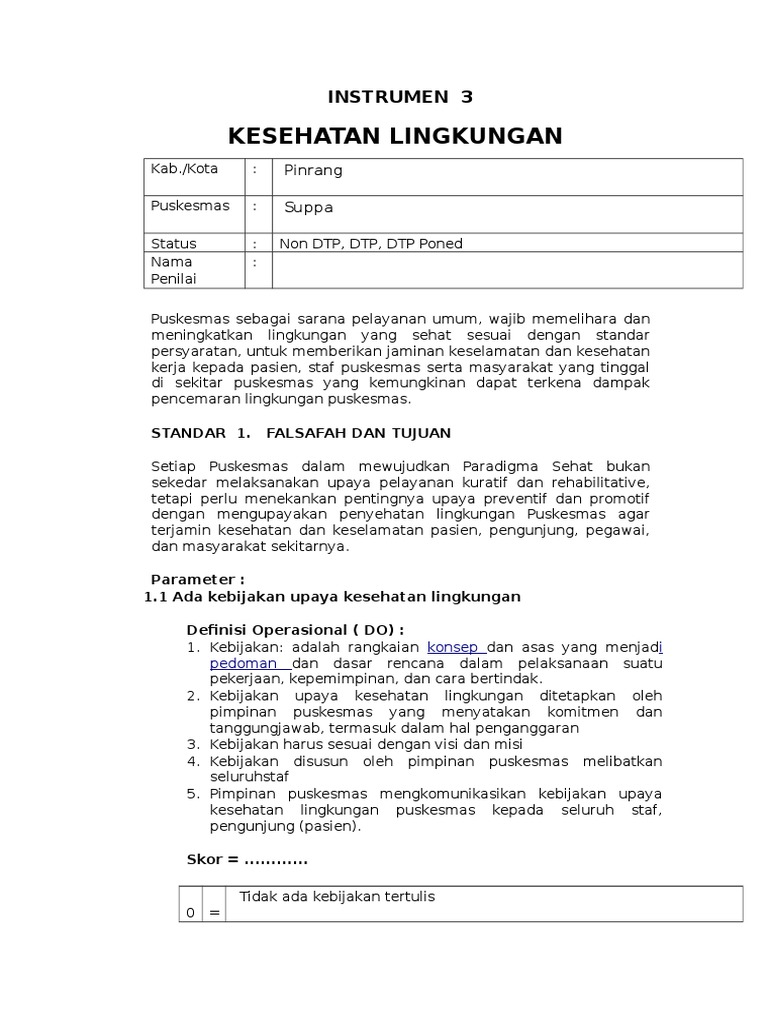 Instrumen Kesling Akreditasi Puskesmas Pdf