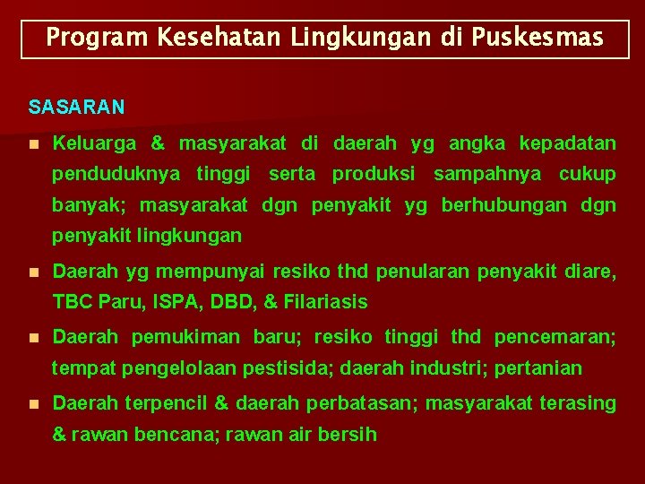 Ppt Program Kesehatan Lingkungan Puskesmas Ppt Pptx Susan Ti Academia Edu